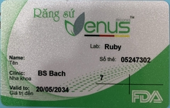 THẺ BẢO HÀNH CHÍNH HÃNG RUBY Sản phẩm / Product Venus Số thẻ / Card No. 05247302 Tên / Name Phòng khám / Clinic BS Bách Labo / Lab Ruby Số Răng R17 Gía trị đến / Valid to 20/05/2034 Xuất sứ Nhật