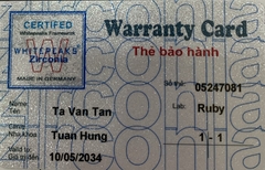 THẺ BẢO HÀNH CHÍNH HÃNG RUBY Sản phẩm / Product Ziconia Số thẻ / Card No. 05247081 Tên / Name Tạ Văn Tấn Phòng khám / Clinic Tuấn Hùng Labo / Lab Ruby Số Răng R11-21 Gía trị đến / Valid to 10/05/2034 Xuất sứ Nhật