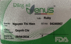 THẺ BẢO HÀNH CHÍNH HÃNG RUBY Sản phẩm / Product Venus Số thẻ / Card No. 04246907 Tên / Name Nguyễn Thị Hiền Phòng khám / Clinic Quỳnh Chi Labo / Lab Ruby Số Răng R47 Gía trị đến / Valid to 29/04/2034 Xuất sứ Đức