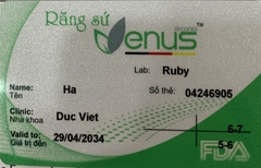 THẺ BẢO HÀNH CHÍNH HÃNG RUBY Sản phẩm / Product Venus Số thẻ / Card No. 04246905 Tên / Name Hà Phòng khám / Clinic Đức Việt Labo / Lab Ruby Số Răng R26-27 R35-36 Gía trị đến / Valid to 29/04/2034 Xuất sứ Đức