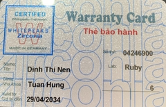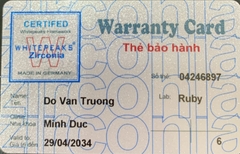 THẺ BẢO HÀNH CHÍNH HÃNG RUBY Sản phẩm / Product Ziconia Số thẻ / Card No. 04246897 Tên / Name Đỗ Văn Trường Phòng khám / Clinic Minh Đức - BS My Labo / Lab Ruby Số Răng R36 Gía trị đến / Valid...