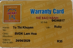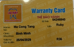 THẺ BẢO HÀNH CHÍNH HÃNG RUBY Sản phẩm / Product Tital Số thẻ / Card No. 04246840 Tên / Name Ma Công Tăng Phòng khám / Clinic NK Bình Minh Tuyên Quang Labo / Lab Ruby Số Răng R36 Gía trị đến / Valid...