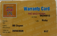 THẺ BẢO HÀNH CHÍNH HÃNG RUBY Sản phẩm / Product Ziconia Số thẻ / Card No. 04246823 Tên / Name Phạm Hữu Dương Phòng khám / Clinic NK Bách Khôi Labo / Lab Ruby Số Răng R12, 24 Gía trị đến / Valid to 24/04/2034 Xuất...