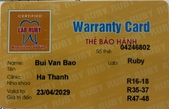 THẺ BẢO HÀNH CHÍNH HÃNG RUBY Sản phẩm / Product Ziconia Số thẻ / Card No. 04246801 Tên / Name Nguyễn Thị Thảo Phòng khám / Clinic NK Hà Thành (BS Bình) Labo / Lab Ruby Số Răng R31-33 Gía trị đến / Valid...