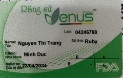 THẺ BẢO HÀNH CHÍNH HÃNG RUBY Sản phẩm / Product Venus Số thẻ / Card No. 04246798 Tên / Name Nguyễn Thị Trang Phòng khám / Clinic NK Minh Đức (BS My) Labo / Lab Ruby Số Răng R16-26 R36-48 Gía trị đến / Valid...