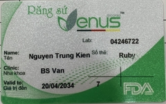 THẺ BẢO HÀNH CHÍNH HÃNG RUBY Sản phẩm / Product Venus Số thẻ / Card No. 04246722 Tên / Name Nguyễn Trung Kiên Phòng khám / Clinic BS Vân Trung Văn Labo / Lab Ruby Số Răng R47 Gía trị đến / Valid to 20/04/2034 Xuất...