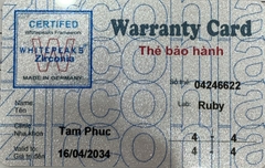 THẺ BẢO HÀNH CHÍNH HÃNG RUBY Sản phẩm / Product Tital Số thẻ / Card No. 04246623 Tên / Name Nguyễn Việt Hùng Phòng khám / Clinic BS Thiết Labo / Lab Ruby Số Răng R34-38, 23-25 Gía trị đến / Valid to 16/04/2029 Xuất sứ Nhật