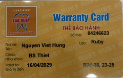 THẺ BẢO HÀNH CHÍNH HÃNG RUBY Sản phẩm / Product Tital Số thẻ / Card No. 04246596 Tên / Name Dương Quốc Minh Phòng khám / Clinic NK Xuyền Hà Labo / Lab Ruby Số Răng R35, 44-45 Gía trị đến / Valid to 16/04/2029 Xuất...