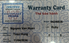 THẺ BẢO HÀNH CHÍNH HÃNG RUBY Sản phẩm / Product Ziconia Số thẻ / Card No. 04246536 Tên / Name Nguyễn Văn Huân Phòng khám / Clinic Tuấn Hùng Labo / Lab Ruby Số Răng R15,25 Gía trị đến / Valid to 11/04/2034 Xuất sứ Nhật