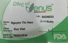 THẺ BẢO HÀNH CHÍNH HÃNG RUBY Sản phẩm / Product Venus Số thẻ / Card No. 04246533 Tên / Name Nguyễn Thị Hiền Phòng khám / Clinic Nk Đức Việt Labo / Lab Ruby Số Răng R11 Gía trị đến / Valid to 10/04/2034 Xuất sứ Nhật