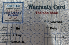 THẺ BẢO HÀNH CHÍNH HÃNG RUBY Sản phẩm / Product Katana Số thẻ / Card No. 04246534 Tên / Name Nguyễn Văn Thảo Phòng khám / Clinic BS Phương Labo / Lab Ruby Số Răng R36-37, 47 Gía trị đến / Valid to 11/04/2034 Xuất sứ Nhật
