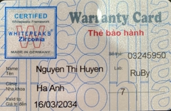 THẺ BẢO HÀNH CHÍNH HÃNG RUBY Sản phẩm / Product ZiconiaFull Số th ẻ / Card No. 03245950 Tên / Name Nguyễn Thị Huyền Phòng khám / Clinic NK Hà Anh Labo / Lab Ruby Số Răng R17 Gía trị đến / Valid...