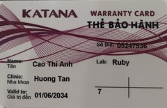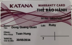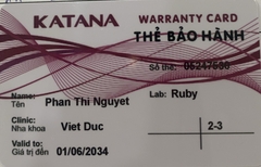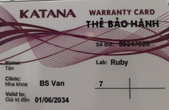 THẺ BẢO HÀNH CHÍNH HÃNG RUBY Sản phẩm / Product Katana Số thẻ / Card No. 05247530 Tên / Name Phan Thị Nguyệt Phòng khám / Clinic NK Việt Đức- BS Tùng Tam Dương Labo / Lab Ruby Số Răng R22-23 Gía trị đến...