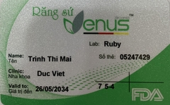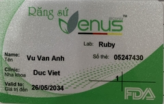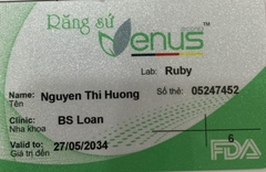 THẺ BẢO HÀNH CHÍNH HÃNG RUBY Sản phẩm / Product Venus Số thẻ / Card No. 05247452 Tên / Name Nguyễn Thị Hường Phòng khám / Clinic Ruby Thái Bình- BS Loan Labo / Lab Ruby Số Răng R36 Gía trị đến / Valid...
