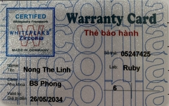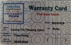 THẺ BẢO HÀNH CHÍNH HÃNG RUBY Sản phẩm / Product Ziconia Số thẻ / Card No. 05247428 Tên / Name Lương Thị Phương Uyên Phòng khám / Clinic Tuấn Hùng Labo / Lab Ruby Số Răng R37 R47 Gía trị đến / Valid to 26/05/2034 Xuất sứ Nhật